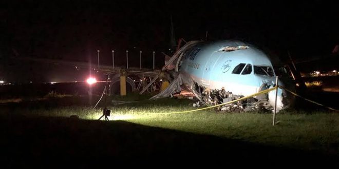 Korean Air firmasına ait Seul-Cebu seferini yapan A330-322 tipi yolcu uçağı Mactan-Cebu Uluslararası Havalimanı’na iniş yaptığı sırada kötü hava koşulları nedeniyle duramayarak pistten çıktı.