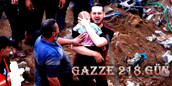 İsrail’in Gazze’ye yönelik saldırısının 218’inci gününde işgal ordusu, Gazze Şeridi’nin birçok bölgesini, özellikle de Refah’ı, Nuseyrat kampını ve Gazze Şehri’ni bombalamaya devam ederek, saldırıların bilançosunun artmasıyla birlikte daha fazla şehit ve yaralı bıraktı.