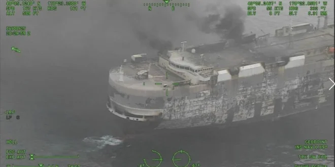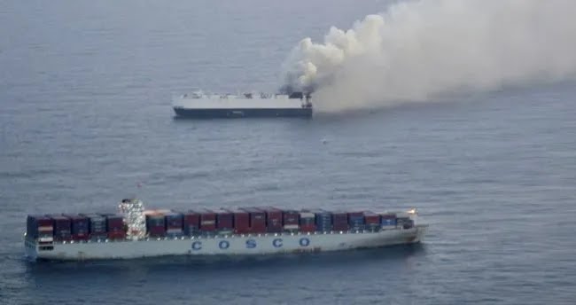 Çin’den Meksika’ya sefer yapan Liberya bandıralı “Morning Midas” adlı dev kargo gemisinde, 3 Haziran’da büyük bir yangın çıktı. 3048 araç taşıyan 182 metre uzunluğundaki gemi, nedeni belirlenemeyen bir şekilde alev aldı.