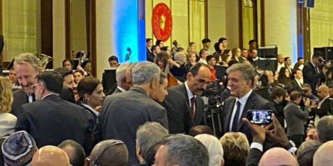 Cumhurbaşkanı Erdoğan ile Gül, tören salonunda selamlaştı.
