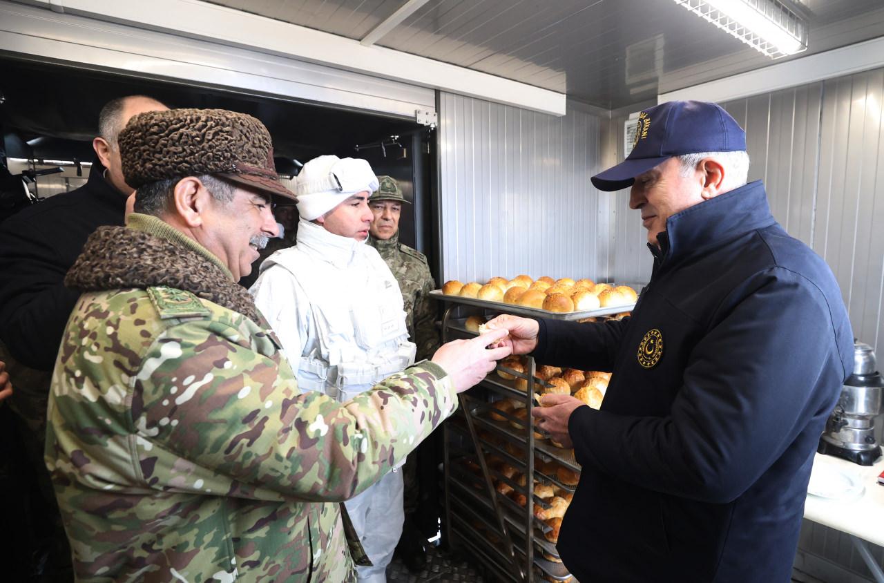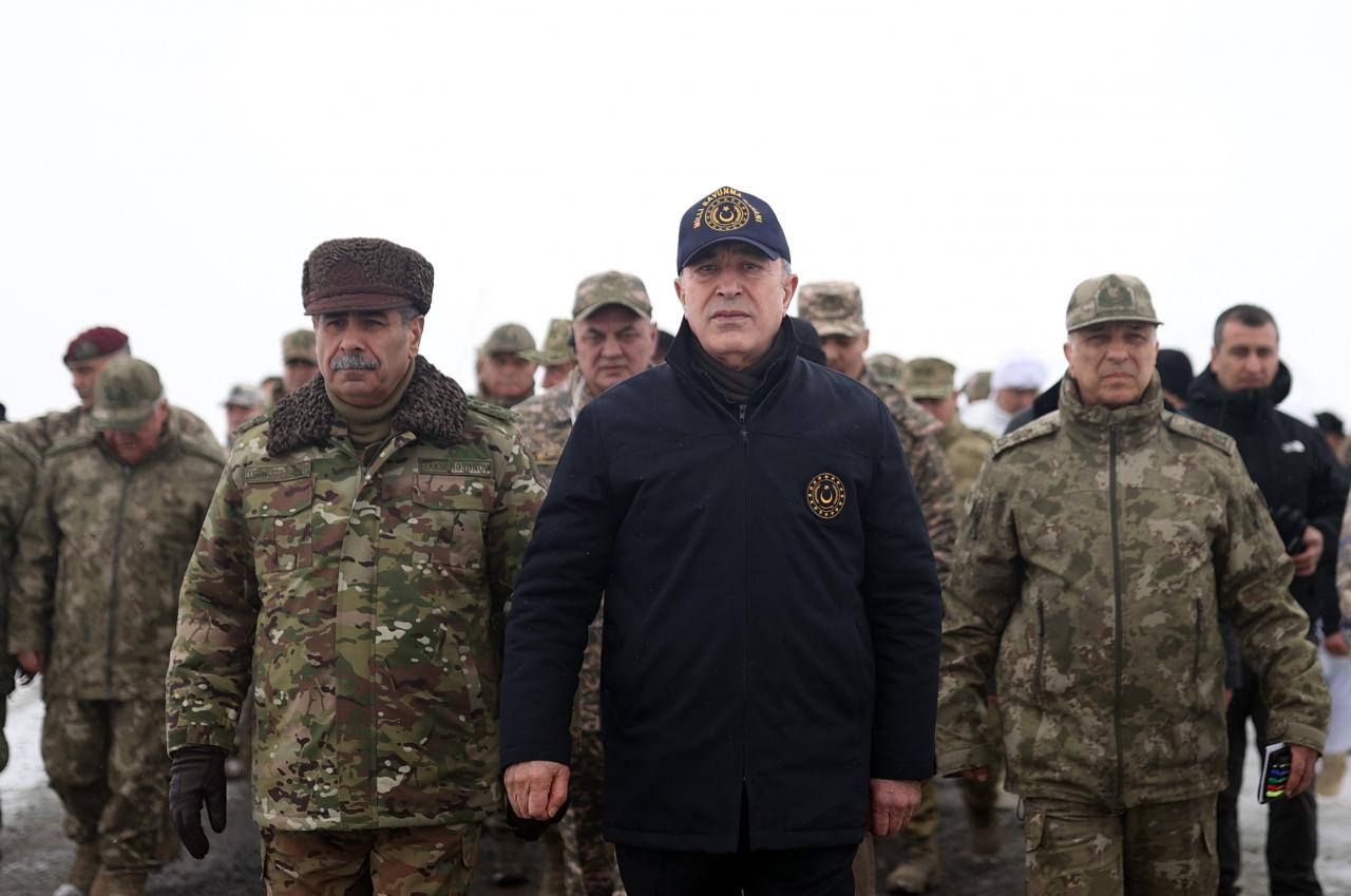 Azerbaycan ile ilgili açıklamalarda bulunan Bakan Akar, “Can gardaşımız Azerbaycan ile kardeşliğimiz tek yumruk, tek yürek olarak devam edecek. Azerbaycan yalnız değil. Sayın Cumhurbaşkanlarımızın çizdiği çerçevede; Azerbaycan ordusunun modernizasyonu, kuruluşu, eğitimi, tatbikatı ve donanımına yönelik çalışıyoruz. Zengezur koridoru ve oradan geçecek demir ve kara yolları bölge için ekonomik ve sosyal hayat ile güvenlik bakımından çok kıymetli. Ermenistan tarafından da Sn. Aliyev’in, Sn. Cumhurbaşkanımızın uzattığı barış elinin tutulması önemli. Başkalarının etkisinde kalarak birtakım hayallere kapılmanın anlamı yok. Gerçekleri görelim. Makul şartlarda anlaşmamızı yapalım, barışı, huzuru istikrarı sağlayalım, rahat, huzur içinde yaşayalım. Ermenistan’a bu fırsatı değerlendirin diyoruz” diye konuştu.