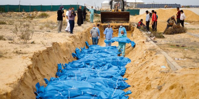 Toplu mezarlar, 7 Ekim’den beri Gazze’nin acı gerçeği haline geldi. Her gün onlarca masum can, sırf Müslüman Filistinli kimliğine sahip olduğu için işgalci teröristler tarafından katledilip topluca defnediliyor.
