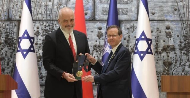 Arnavutluk Başbakanı Edi Rama, siyonist İsrail Cumhurbaşkanı Isaac Herzog tarafından işgal altındaki Kudüs’te “Cumhurbaşkanlığı Onur Madalyası” ile ödüllendirildi