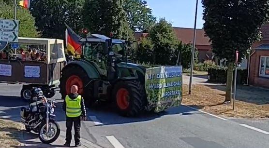 Traktör, kamyon ve motosikletlerle konvoy yapan Alman protestocular, “Tolerans sınırı aşıldı, yeter artık” sloganları attı.