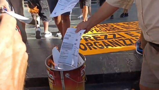 İtalya’nın Napoli kentinde belediye binasının önüne gelen binlerce gösterici, elektrik faturalarını yakarak hükümeti ve belediyeyi protesto etti.