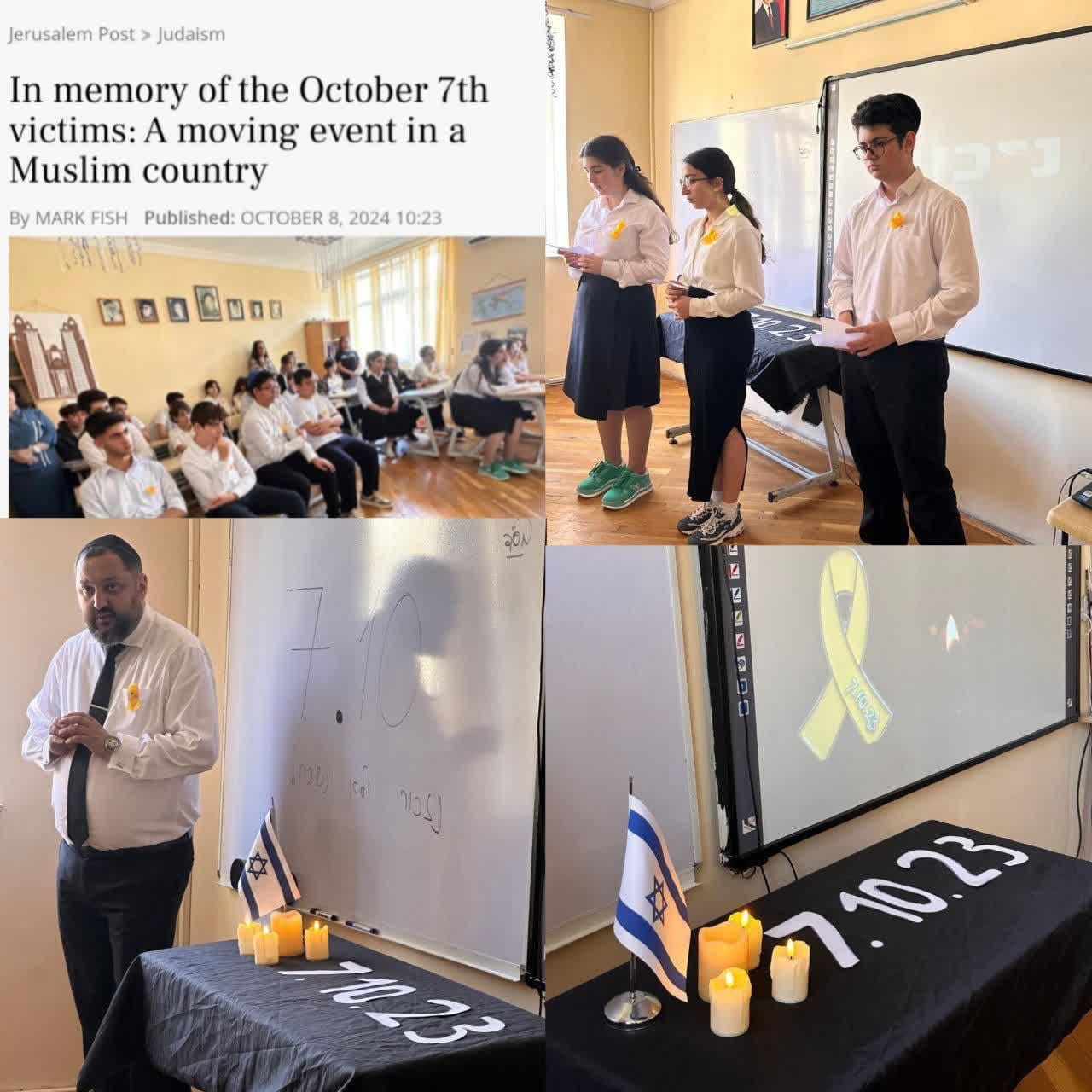 “7 Ekim’de Yahudi halkının başına gelen t trajedinin yıldönümü münasebetiyle bu sabah Bakü okullarında anma töreni düzenlendi”.
