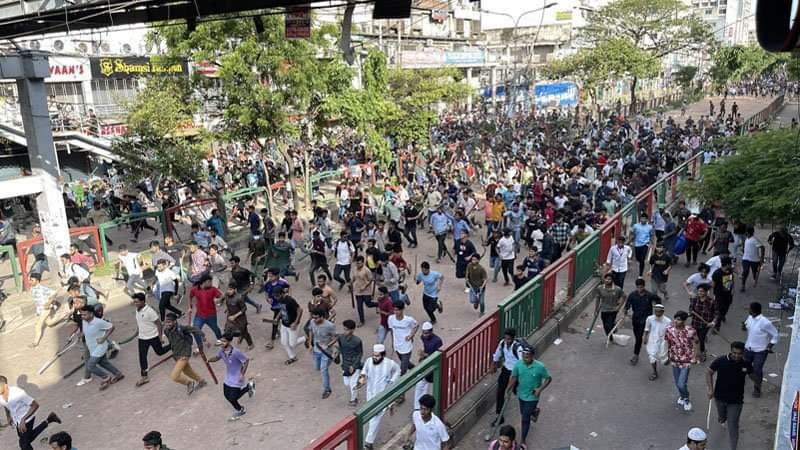Bangladeş yetkililerinin kamu hizmeti alım kotasına karşı çıkan protestoları bastırmak için bazı mobil internet hizmetlerini kesmesinin ardından, binlerce öğrenci Dakka’da sopa ve taşlarla polise saldırdı.