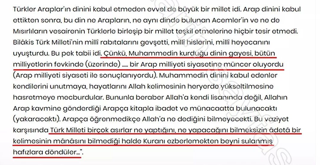 “Yahu kardeşim Atatürk beyni sulanmış hafızların dini diyor bunu niye saklıyoruz yav! Ne olur kıvırmayalım artık senelerdir Türkiye’de bu yapılıyor. Atatürk’ün meclis açılışında yaptığı o meşhur konuşması (gökten indiği sanılan kitaplar) ile Afet Hanım’ın Medeni Bilgiler kitabında Atatürk’ün el yazısıyla yayınladığı örnekler ateist metinlerdir.” Açıklamasını yaptı.