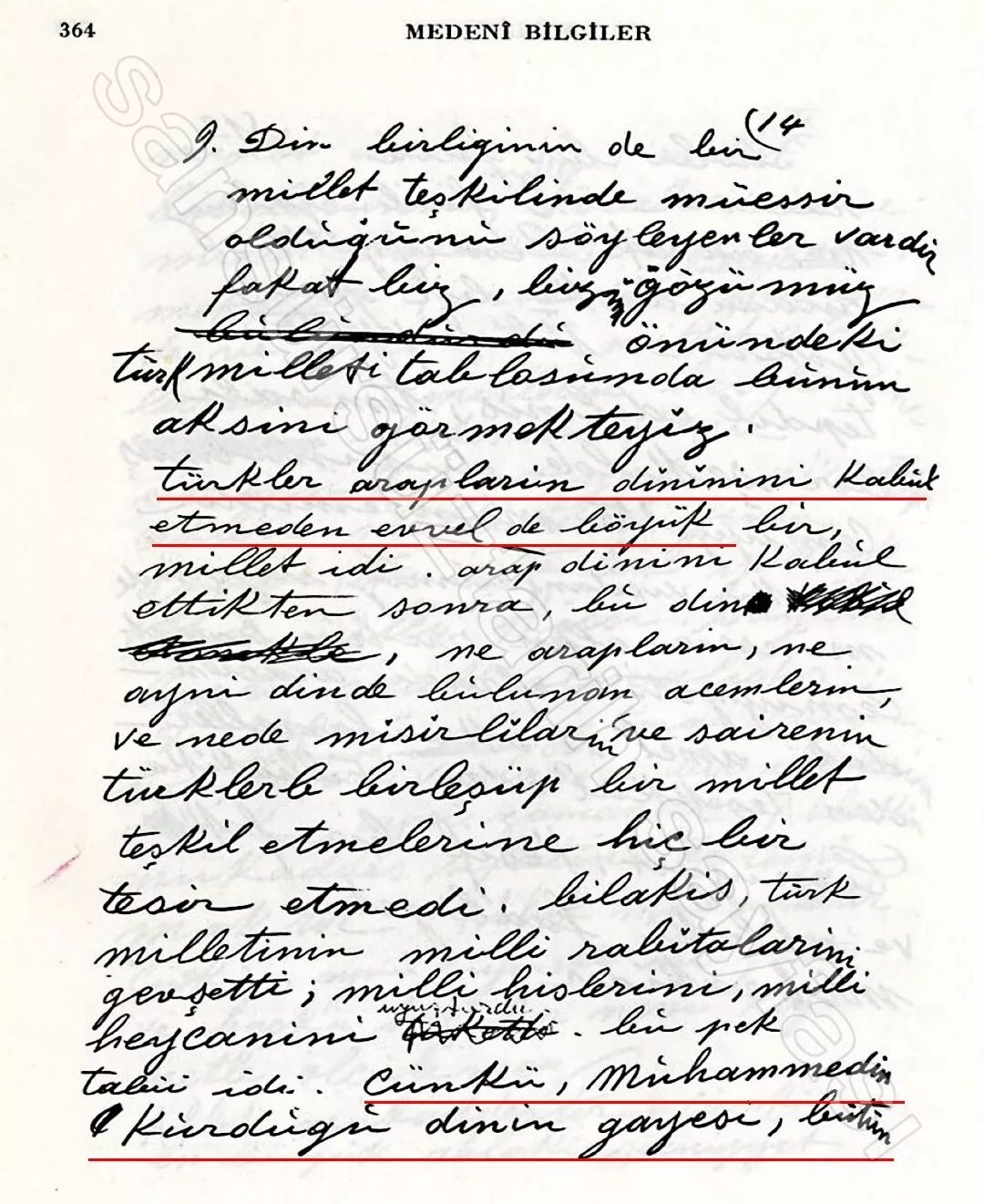 Son dönemlerde sosyal medyada ve siyasetin gündeminde olan Mustafa Kemal’in Medeni Bilgiler kitabında şu ifadeler yer almaktadır;