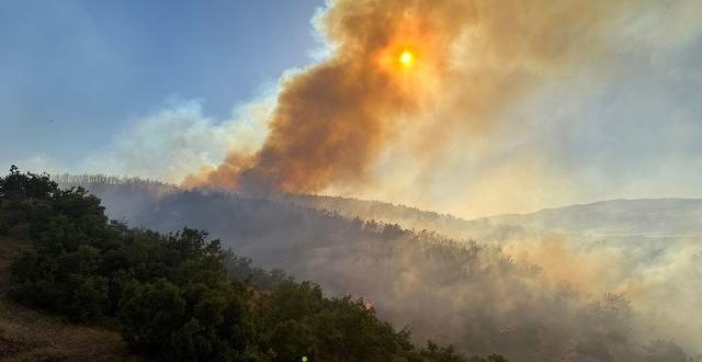 Rüzgarın etkisiyle büyüyen yangını kontrol altına alma çalışmaları sürüyor.