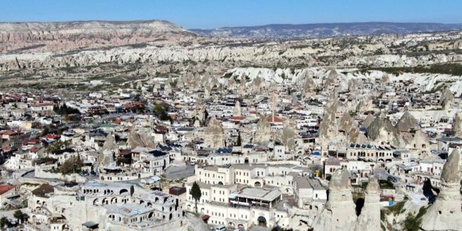 Koronavirüs ile mücadele kapsamında alınan tedbirlerle hayalet şehre dönen Türkiye’nin önemli turizm bölgesi Kapadokya havadan görüntülendi.