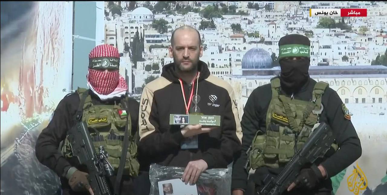 Daha önceki rehine takaslarında da olduğu gibi Gazze’de düzenlenen törenle serbest kalan esirler Sagui Dekel-Chen, Aleksander Trufanov ve Yair Horn, Kızılhaç yetkililerine teslim edildi.