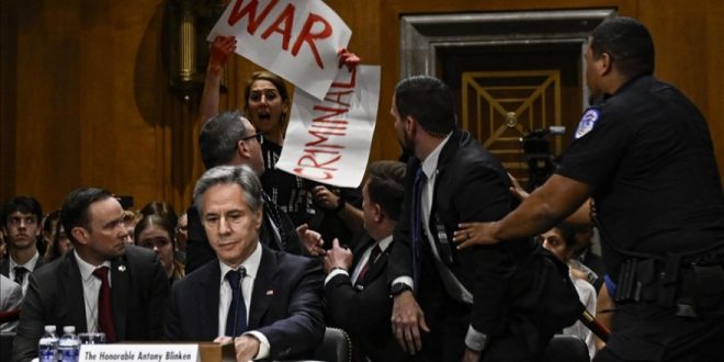 Blinken, Senato Dış İlişkiler Komitesi önünde ABD diplomasisi, küresel zorluklar ve 2025 bütçe talebi konusunda ifade verirken konuşması protestolarla bölündü.