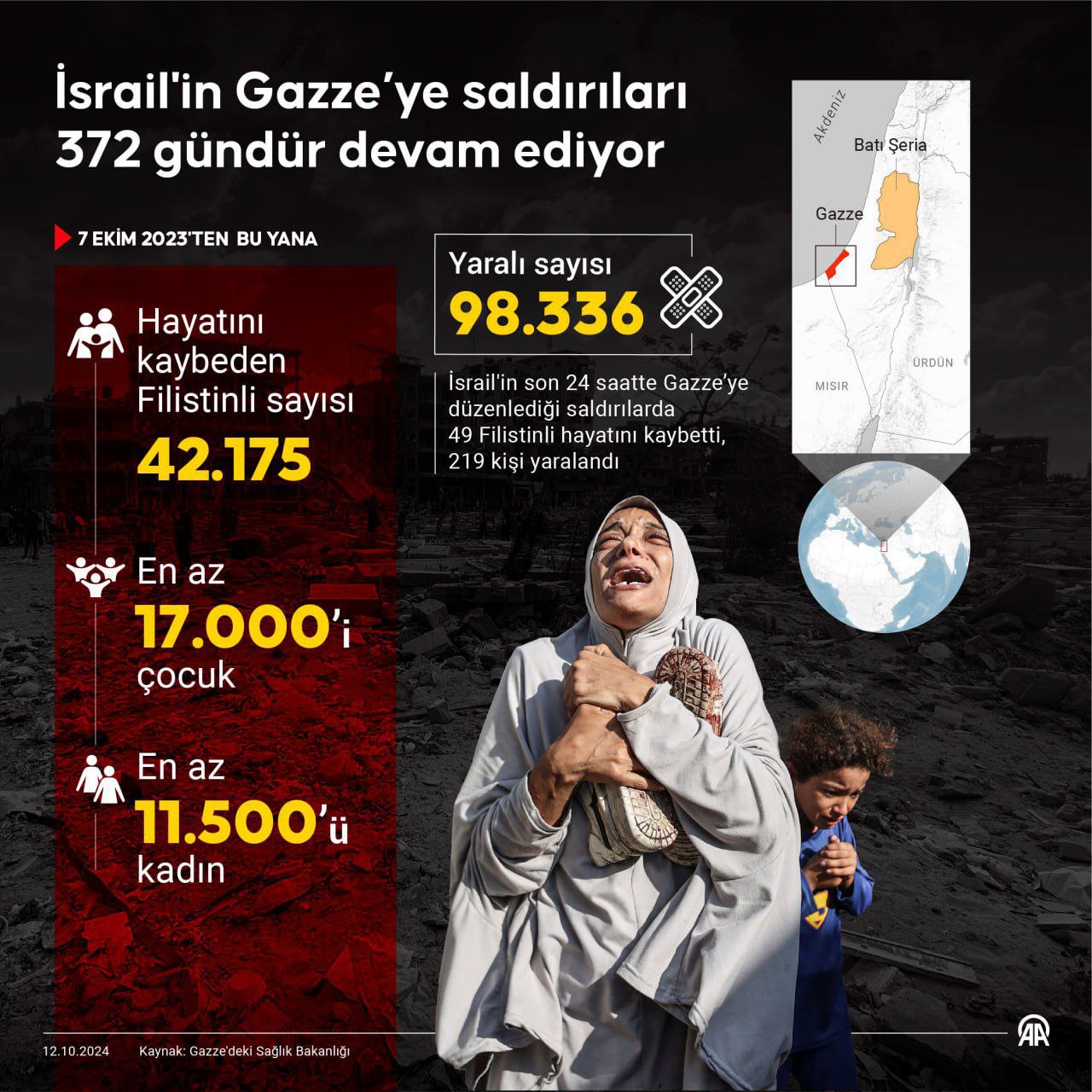 Katil köpekler sürüsü İsrail’in 372 gündür Gazze’de yapmış olduğu saldırıların bilançosu çok ağır.