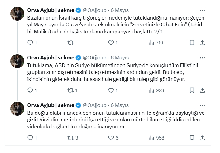 Ancak gerekçesi ne olursa olsun, bu tutuklama ciddi soruları gündeme getiriyor: Gazze için yardım toplamak neden cezalandırılıyor? Filistinli mücahitlerle dayanışma, HTŞ’nin suç listesinde mi yer alıyor?