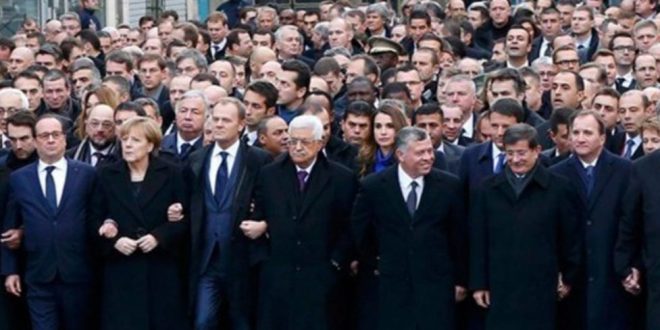 O gün dayanışma için Paris’e koşan 40 ülkenin lideri, Gazze’de katledilen 40 bin kişi için ne yaptı kınama mesajlarından başka? 12 Fransız için sözüm ona terörü lanetleyen liderler, on binlerce kişiyi katleden Yahudi canavarlığına ‘terör’ bile diyemedi.