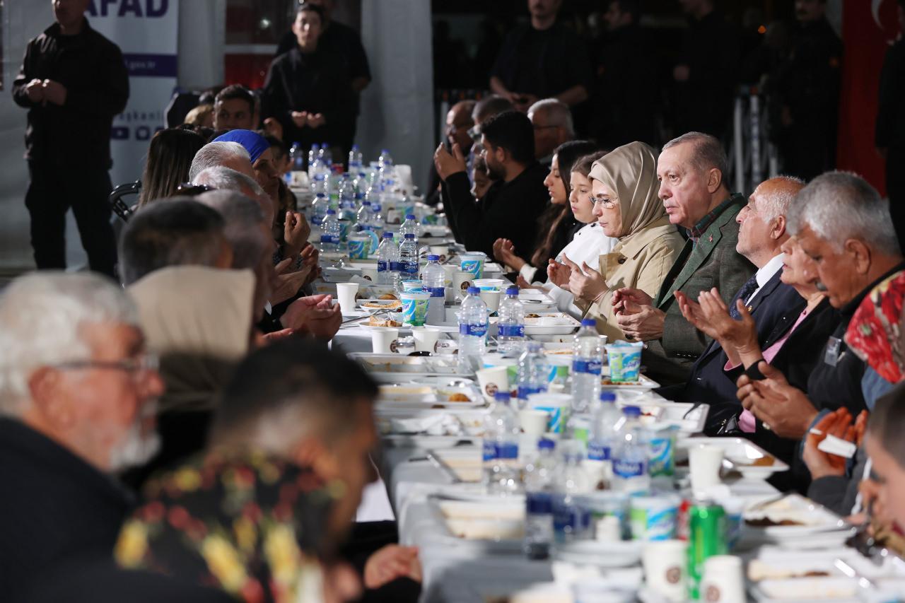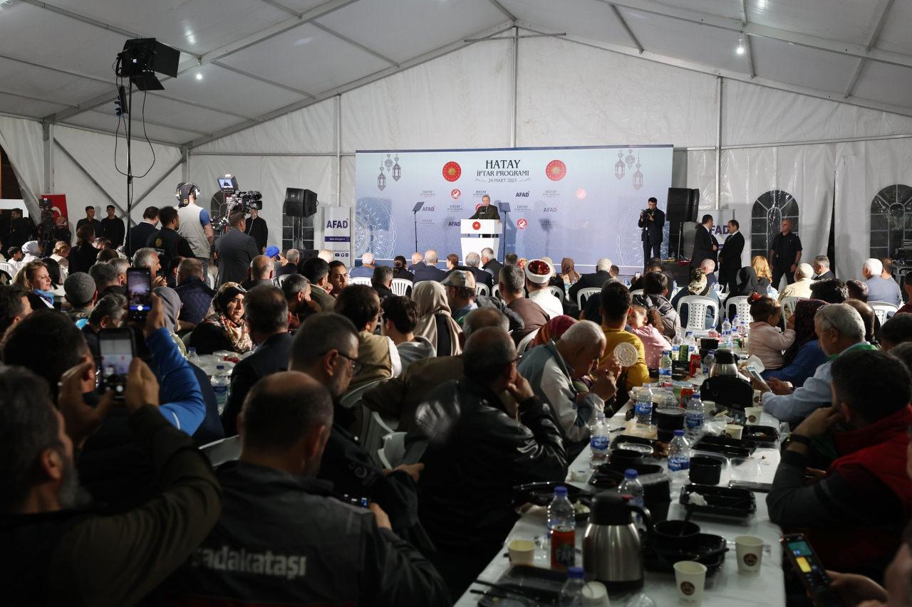 Cumhurbaşkanı Erdoğan, MHP Genel Başkanı Devlet Bahçeli ile Hatay’daki Büyükdalyan Konteyner Kenti’nde depremzede ailelerle iftar yaptı.