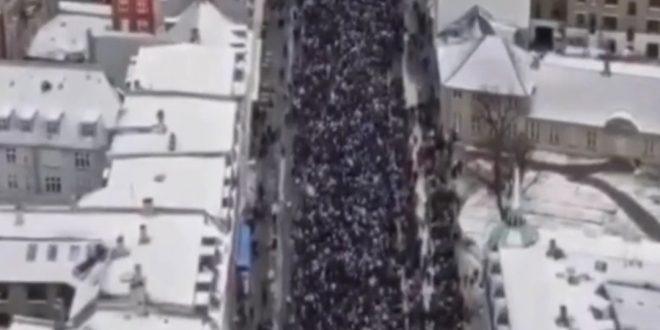 Danimarka’da binlerce aktivist dondurucu soğuğa aldırmadan başkent Kopenhag’da İsrail’in zulüm ettiği Filistin’li Müslümanları anmak için kilometreler uzunluğunda kalabalık oluşturdu. Kalabalık Filistin’e destek yürüyüşü düzenledi. Ellerinde pankart ağızlarında sloganlarla saatlerce yürüdüler.