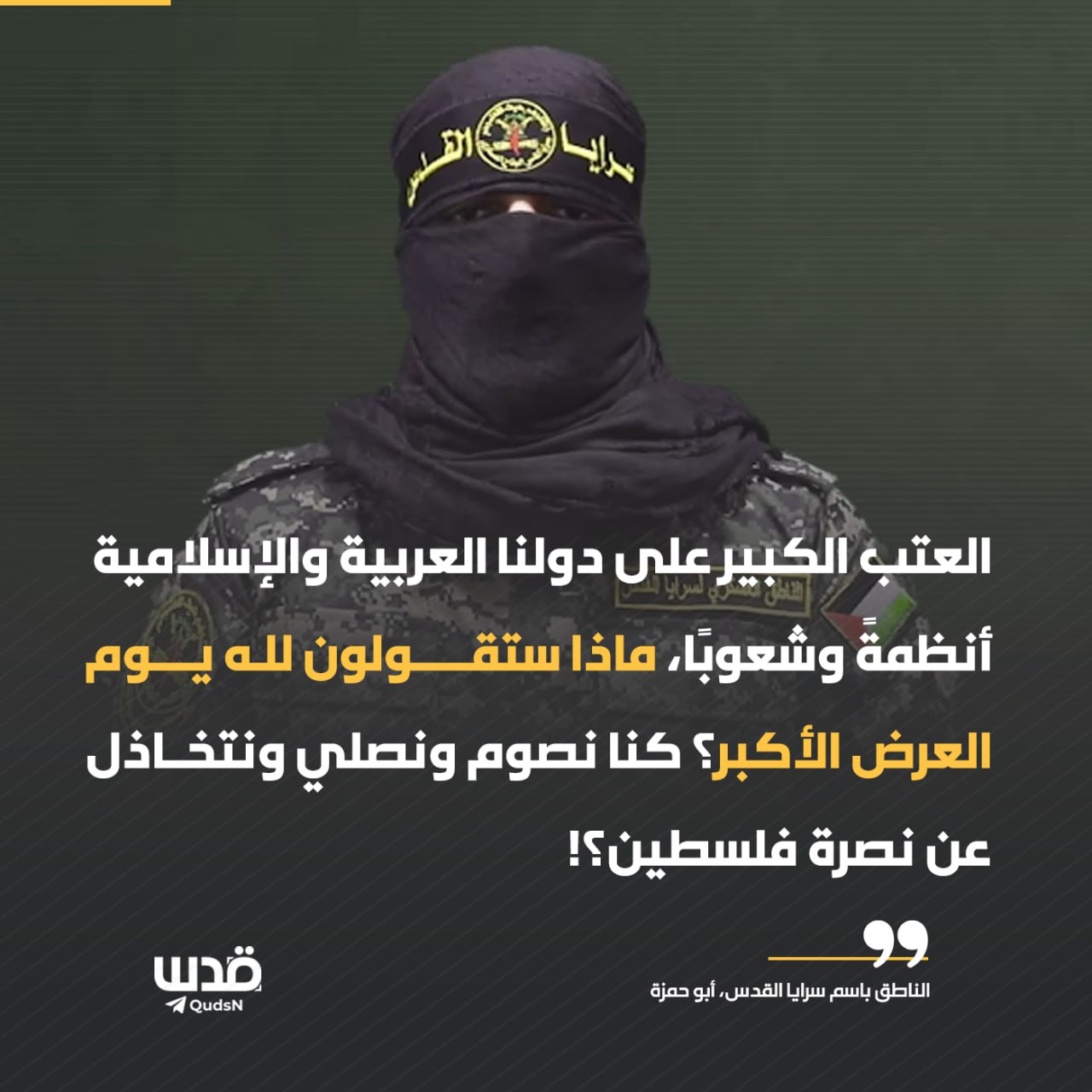 Kudüs Tugayları Sözcüsü “Ebu Hamza” İslam ve Arap ülkelerinin yöneticilerine ve halklarına seslendi