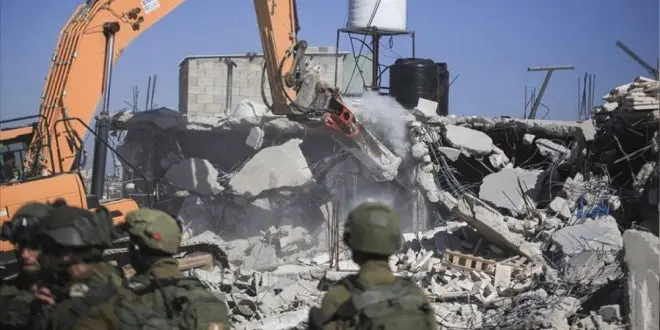Tüm bölgeyi “güvenlik” kordonuna alan İsrail güçleri, engelli Hatem Ebu Reyyale’ye ait iki daireli binayı “ruhsatsız” olduğu gerekçesiyle yıktı.
