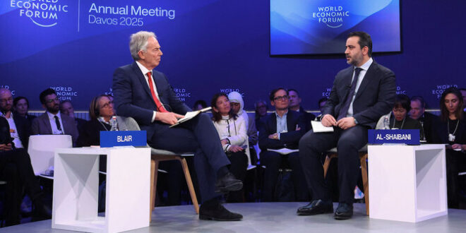 Şeybani, Davos’taki eski İngiltere başbakanı Tony Blair ile yaptığı görüşmede. “Yeni Suriye için ilhamı nerede görüyoruz? Suudi Arabistan’ın Vizyon 2030’una sahibiz,” dedi.