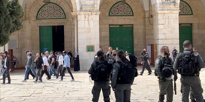 İşgalci İsrail polisinin eşlik ettiği onlarca fanatik Yahudi, işgal altındaki Doğu Kudüs’ün Eski Şehir bölgesinde bulunan Mescid-i Aksa’nın avlusuna girdi.