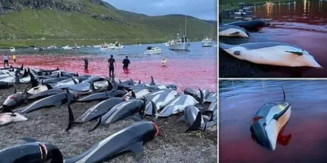 Danimarka’ya bağlı Faroe Adaları’nda rekor sayıda beyaz yanlı yunus öldürüldü. Av sırasında bin 500 civarında yunusun katledildiği bildirildi.