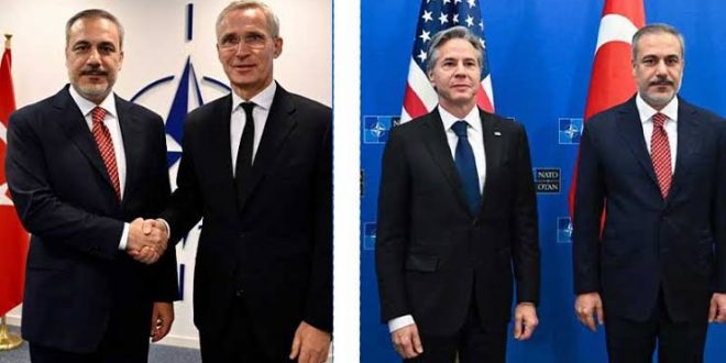 Bakan Fidan, NATO Karargahı’nda toplantı öncesi NATO Genel Sekreteri Jens Stoltenberg ve ABD Dışişleri Bakanı Antony Blinken ile ayrı ayrı görüşmeler gerçekleştirdi. Fidan ile Blinken’in görüşmesinde Gazze’deki son gelişmeler ve İsveç’in NATO’ya üyelik süreci ele alındı.