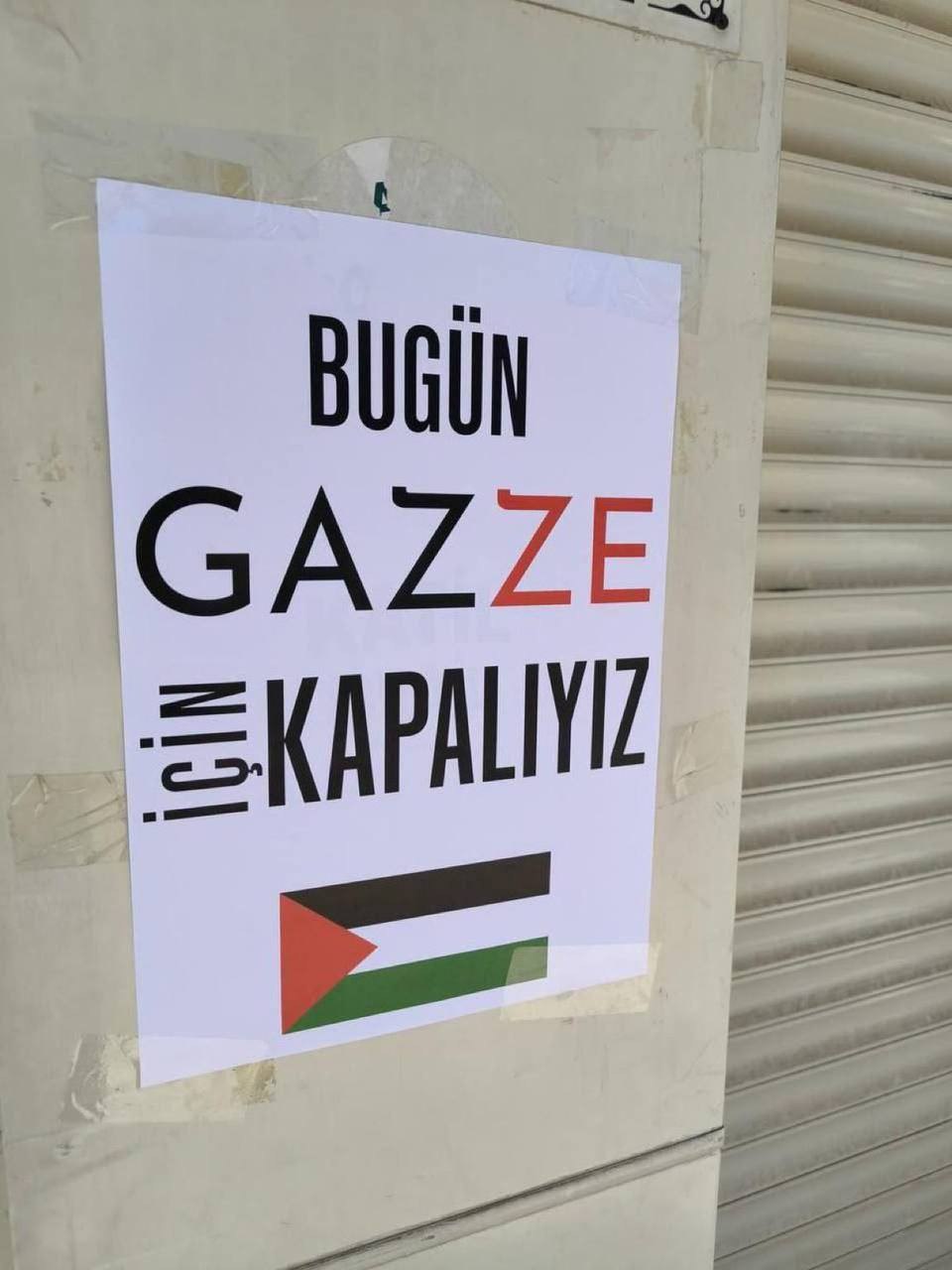 Organizatörler, dükkanların kapatılmasının Gazze halkıyla dayanışmayı ifade etmenin ve İsrail işgaline karşı bir duruş sergilemenin barışçıl bir yolu olduğunu belirtiyor.