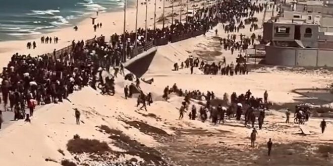 Binlerce Filistinli, bazı vatandaşların Gazze şehrine doğru kapalı bir kontrol noktasından geçmeyi başardığını duyduktan sonra Pazar günü kuzeydeki sahil yoluna koyuldu.