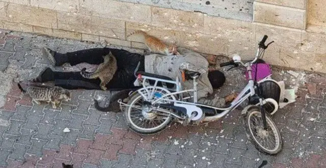 Açlığa maruz bırakılan insanlar hayvan yeminden ekmek yaparken, sokaktaki hayvanlar ise caddelerde kalmış şehitlerin naaşını yemeğe başladı.