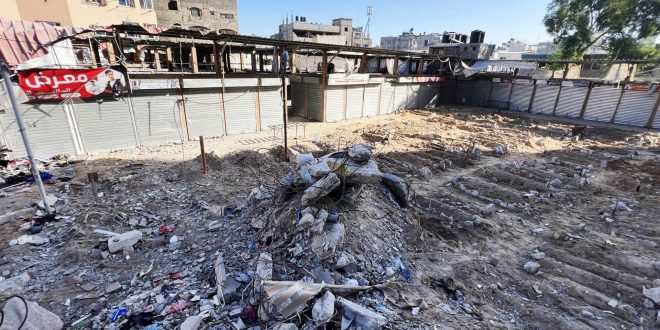 İsrail ordusunun havadan ve karadan saldırılarını sürdürdüğü Gazze’de bulunan Cibaliya Mülteci Kampı’nda kabristanların dolması ve yoğun saldırılar nedeniyle mezarlıklara ulaşılamadığı için halk, saldırılarda hayatlarını kaybeden yakınlarını çarşıda defnediyor.
