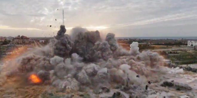 İşgalci İsrail ordusu 315 patlayıcı yerleştirdiği Gazze’deki İsra Üniversitesi’ni havaya uçurdu.