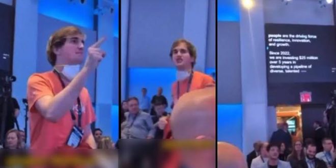 Protesto, İsrail gazetesi Calcalist tarafından New York’ta düzenlenen bir konferansta gerçekleşti.