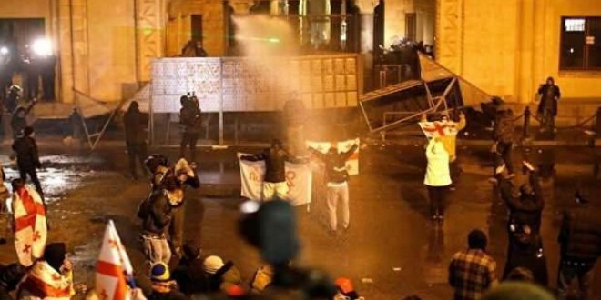 Gürcistan’da “yabancı etkinin şeffaflığı” hakkındaki yasanın onaylanmasını protesto eden göstericiler Parlamento binasını kuşatmaya çalışınca emniyet güçlerince biber gazı ve tazyikli su kullanılarak dağıtıldı.