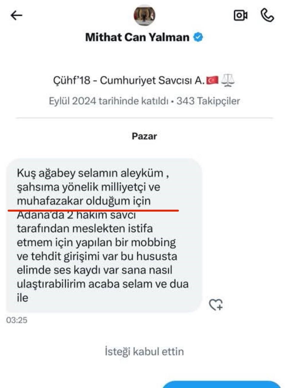 Cumhuriyet savcısı adayı Yalman’ın, olaydan 4 saat önce, muhafazakar olduğu için mobbinge uğradığı, tehditlere maruz kaldığı ve hayatla bağını koparmak istediğine dair sosyal medya hesabından paylaşımda bulunduğu tespit edildi.