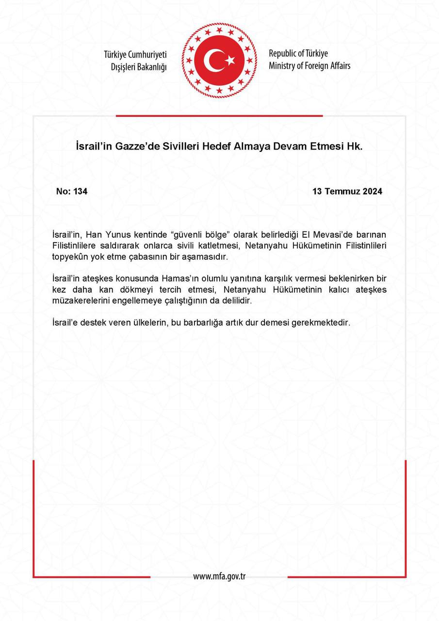 Dışişleri Bakanlığı da Han Hunus saldırısı sonrası bir açıklama yayınladı.