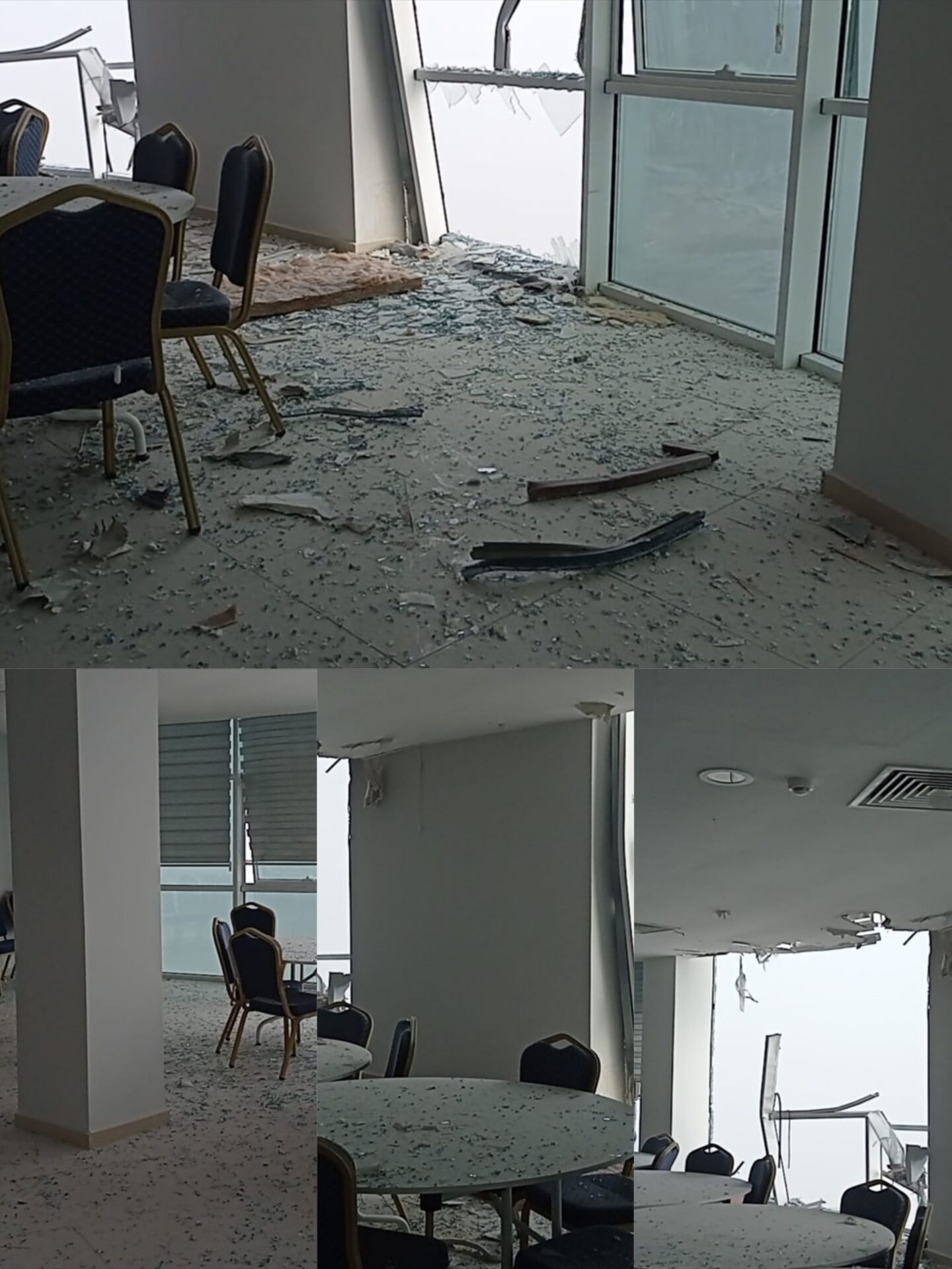 Helikopterin çarptığı hastane odasının görüntüleri.