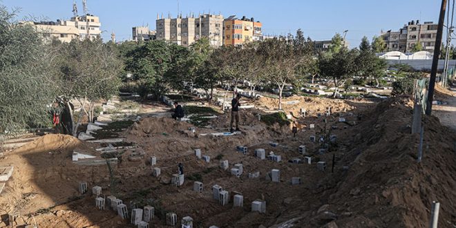 Gazze Medya Ofisi’nden yapılan açıklamada,” İşgal ordusu, Gazze şehrinin doğusundaki El-Tuffah mahalle mezarlığında yaklaşık 1.100 mezarı kazdı, şehitlerin ve ölülerin naaşlarını çıkardı, buldozerlerle çiğnedi ve onurlarını hiçe saydı.