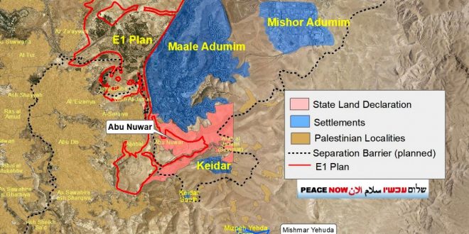 Açıklamada, bu toprakların devlet arazisi ilan edilmesinin, Maale Adumim Yahudi yerleşim birimini genişletmeye yönelik son derece tartışmalı E1 planının bir parçası olabileceği öne sürüldü.