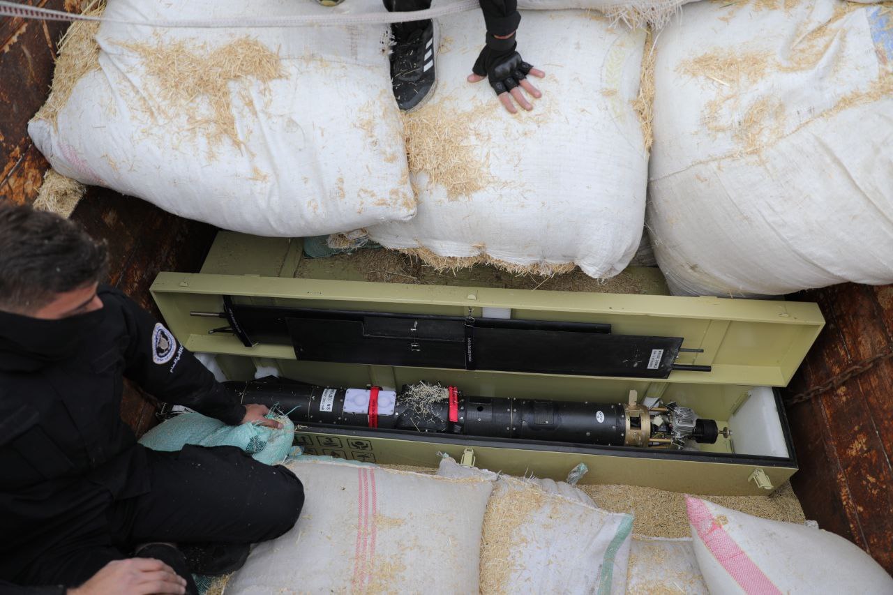 Arkada Kalaşnikof makineli tüfekler, AKS-74U ve AK-103 saldırı tüfeklerinin yanı sıra Shahed-101 kamikaze İHA’nın bulunduğu üç konteyner dolusu silah, Lübnan’a gönderilmek üzereyken yakalandı. Silahların Hizbullah’a ait olduğu iddia edildi.