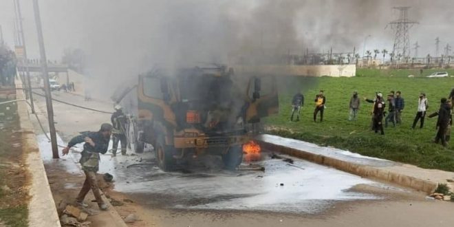 Bölge kaynaklarından edinilen bilgilere göre İdlib kentinin sanayi bölgesi yakınlarında Türk Silahlı Kuvvetleri’ne ait bir yakıt tankerinin geçişi esnasında daha önceden yola yerleştirilen el yapımı patlayıcı infilak ettirildi.