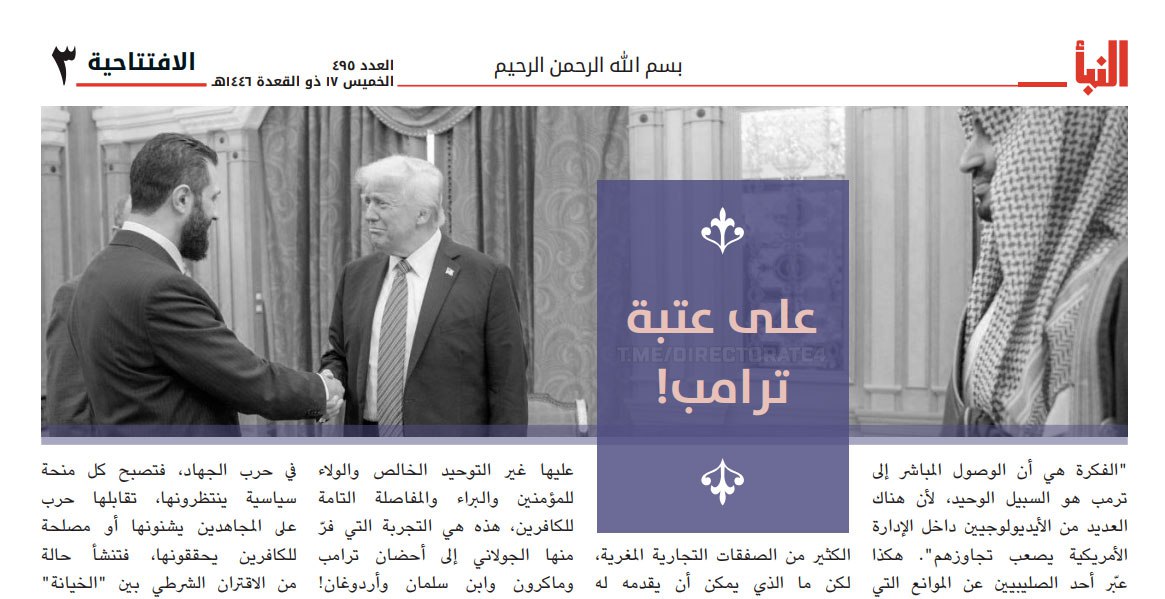 IŞİD’e bağlı Naba gazetesinde yayımlanan bir yazıda, Heyet Tahriru’ş-Şam (HTŞ) lideri Ebu Muhammed el-Cevlani’ye yönelik sert eleştiriler yer aldı. Yazıda, Cevlani’nin Batılı ülkelerle kurduğu ilişkiler ve bu çerçevede izlediği siyasi çizgi ele alındı.