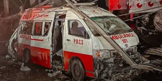 İşgalcilerin bombardımanı ile yıkılan binalardan çıkarılan yaralıları hastaneye yetiştirmeye çalışan ambulanslar, içindeki sağlık personeli ile İsrail terör saldırısının hedefi oldu.