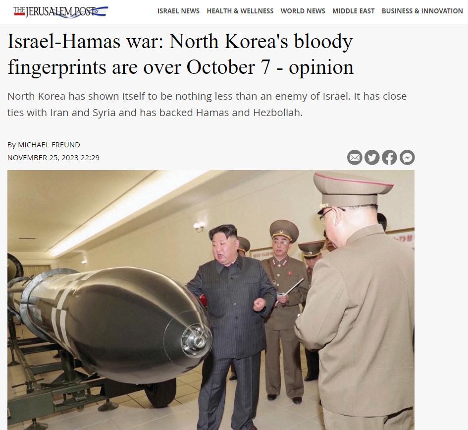 “Michael Freund” imzalı yazıda, “Kuzey Kore, İsrail’in düşmanı olmaktan başka bir şey olmadığını gösterdi. İran ve Suriye ile yakın bağları var ve Hamas ile Hizbullah’ı destekliyor.” denildi.