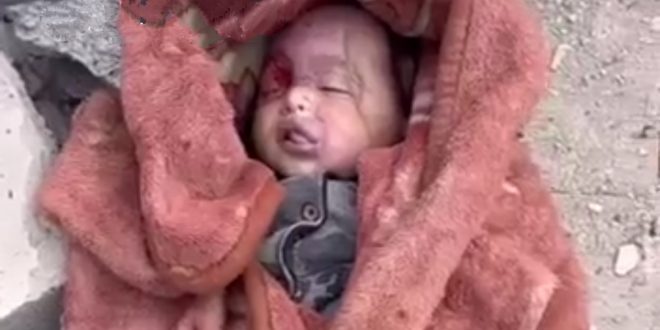 Gazze’nin merkezinde İsrail’in terör saldırısı ile evleri yıkılan masum siviller, beton blokların altında kaldı. Yine minicik bir bebek beton blokların altında can verdi..