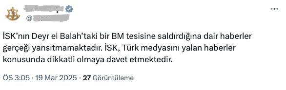 İsrail ordusunun yeni açılan resmi Türkçe hesabı, Birleşmiş Milletler (BM) görevlilerine yönelik saldırıyı reddederken, Türk medyasına açık tehditler savurdu.