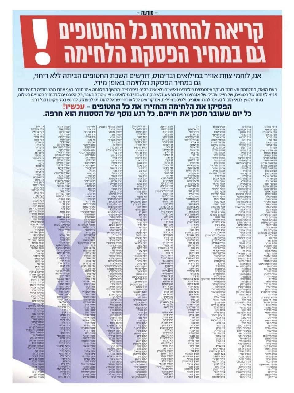 Bildirinin altına imza atanlar aralarında kıdemli subaylar ve deneyimli pilotlar da bulunuyor. Bu kişiler, Gazze’de süren katliamın hükümetin dediği gibi güvenlik gerekçesiyle değil, siyasi çıkarlarla yürütüldüğünü savundu.