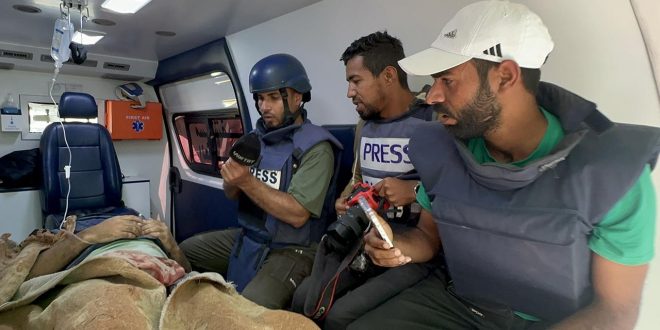 İşgalci İsrail ordusunun Gazze Şeridi’ndeki Nusayrat Mülteci Kampı’nı bombalaması sonucu aralarında TRT Arapça ekibinin de bulunduğu bir grup gazeteci yaralandı.