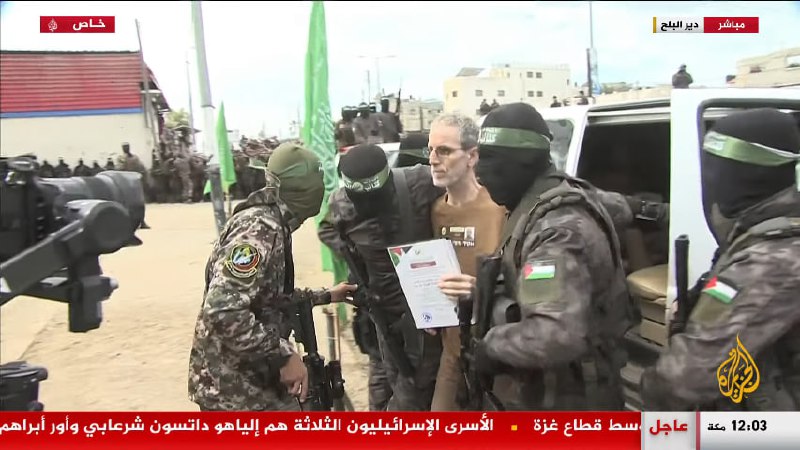 Eliyahu Datsun Yousef Sharavi, Lesha Levy ve Ohud Ben Ami isimli 3 erkek rehinenin Kızılhaç’a teslimi, birçok Kassam askeri ve Gazzelinin katılımıyla gerçekleşti.